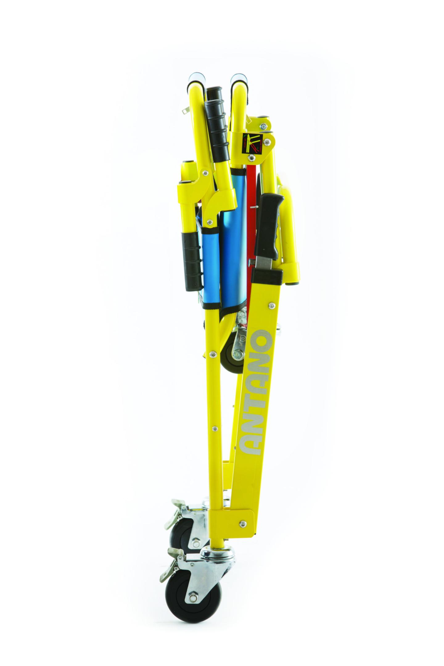 Antano LG EVA-CHAIR to kompaktowe, składane krzesełko transportowe, przeznaczone do bezpiecznego przewożenia osób starszych, z niepełnosprawnościami lub rannych – zarówno w warunkach domowych, jak i profesjonalnych. Jego zaletą jest niewielka waga, łatwość składania oraz możliwość manewrowania w ciasnych przestrzeniach i na schodach.