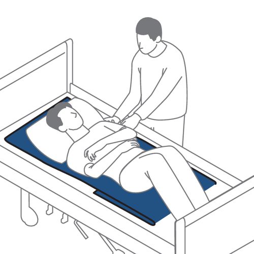 Matę poślizgową do transferu pacjentów BM-Blue Motion wartościową pomocą przy efektywnej zmianie pozycji osoby leżącej.